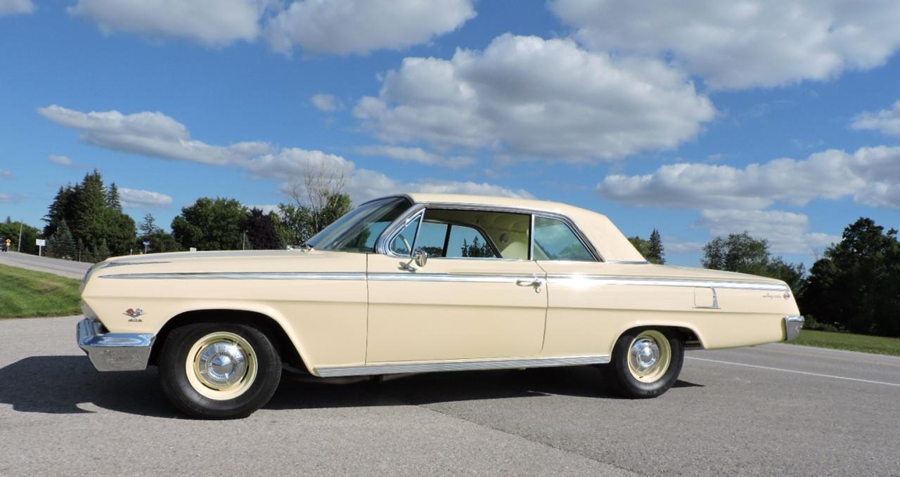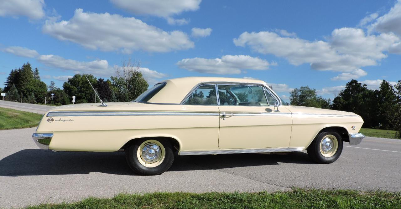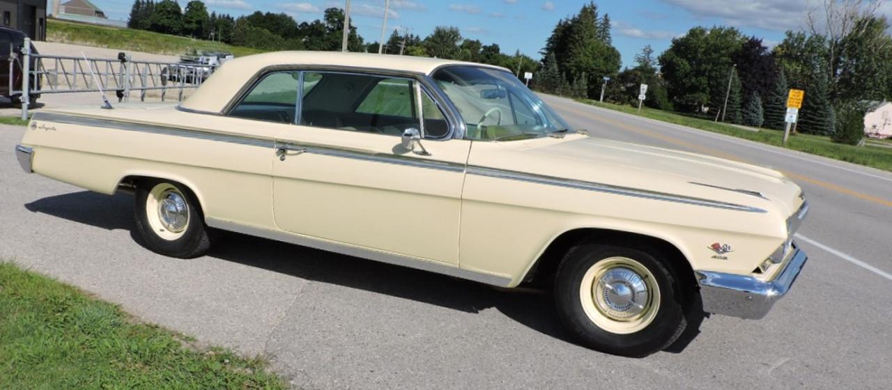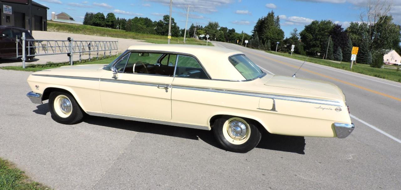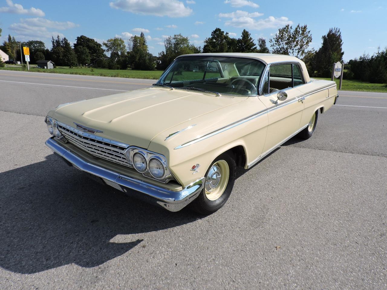 ATTN: AMERICAN BUYERS THE PRICE IS IN CANADIAN FUNDS, PLEASE CALL FOR USA DOLLAR RATES. A beautiful 1962 Impala SS that is powered by a 409 CI engine with dual 1804S Edelbrock 500 CFM carbs and a 4-speed standard transmission. The rear end is a 10-bolt with 3:36 gears. The engine and transmission are both in perfect operating condition. An original [21847] 1962 Chevy Impala V8 Sport Coupe that was refinished in a beautiful yellow colour. Paint condition and panel alignment on this Impala is excellent. All the glass, chrome and trim are in beautiful condition. The interior was completely redone and is flawless. Newer dual exhaust system with Magnaflow mufflers sounds awesome. Many new brake, steering and suspension parts were installed on the restoration. The Hercules tires are like new and still almost 100% tread remaining. Comes with the matching fender skirts, original carbs and air cleaner, original distributor and sway bar as shown in pictures. The car is stunning and a must-see to appreciate the high quality of restoration that was performed on it. See all the pictures and video then come see it in person. A 3-year powertrain warranty is included with purchase. Comes with current insurance appraisal. Trade up or down on other muscle cars/trucks or late model 4X4 trucks. Delivery or shipping can be arranged right to your door within Canada and the USA.