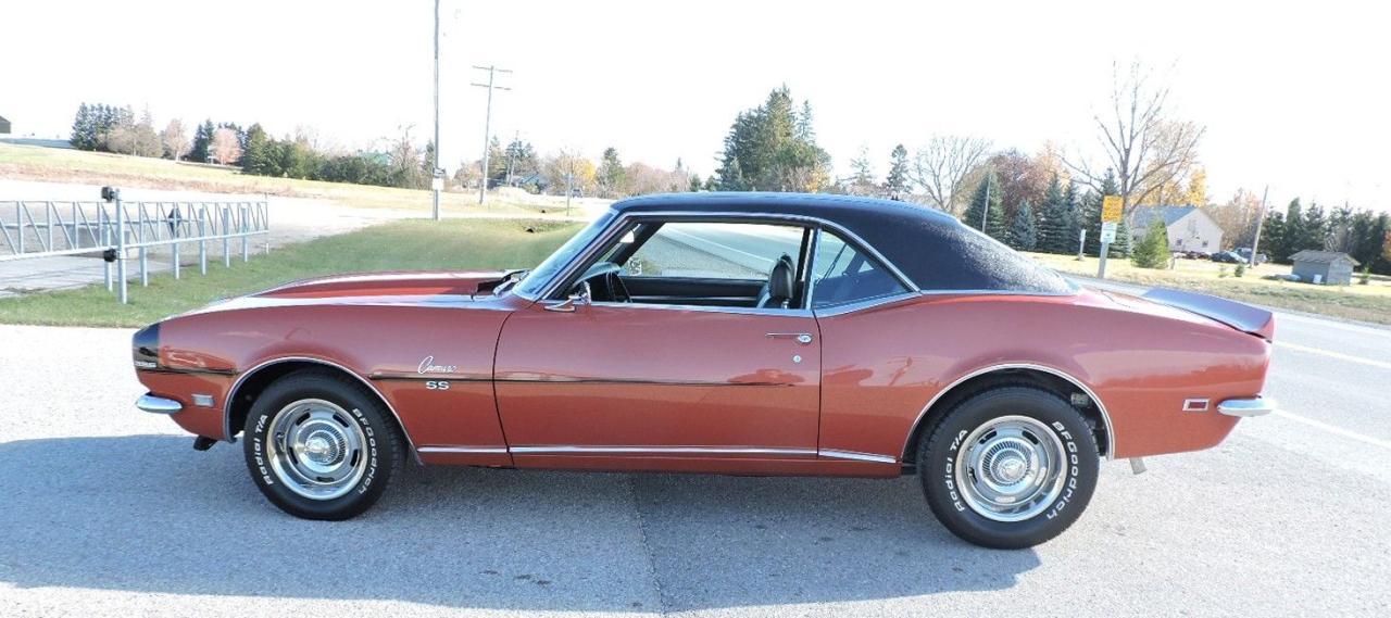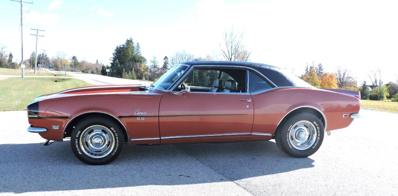 ATTN: AMERICAN BUYERS THE PRICE IS IN CANADIAN FUNDS, PLEASE CALL FOR USA DOLLAR RATES. A beautiful 1968 Camaro is a factory RS/SS powered by a 396 CI V8 engine and an M21 Muncie 4-Speed manual transmission. Sold new in Regina Saskatchewan at Don Wheaton Chev Olds. This stunning Camaro spent time in Saskatchewan then British Columbia before coming to Ontario. The Camaro then underwent a meticulous nut and bolt restoration that took approximately 10 years to complete and was finished in 1968 code OO Corvette Bronze Poly. The car has had only 3500 miles of driving since it was completed. The original 350 was upgraded to a completely rebuilt 1969 [# 3935440] 396 CI engine and a Vintage Air A/C system was added. The Muncie transmission was also rebuilt and a new clutch added. The 12-bolt rear end is brand new and includes an Eaton Posi-Loc unit and 3:42 gears. This is an original L48 Super Sport and Z22 Rally Sport Package optioned 1968 Camaro. All body panels, fit, finish and alignments are excellent. All the chrome and trim is in excellent condition. The interior was redone including the covers and foam for the seats, carpet and headliner, a retro stereo system was also installed, and everything is in brand new condition. Hideaway headlights were upgraded to an electric motor system. Many new parts were installed throughout the car when it was restored including suspension, steering, rims and tires. Brakes were upgraded to 4-wheel disc system, new stainless steel dual exhaust was installed and all the lines for the fuel and brake systems were upgraded to stainless steel ones. The paint is in excellent condition, and this car must-see to appreciate the quality of restoration this beautiful Camaro had performed. Includes factory assembly manual and service manual. A 3-year powertrain warranty is included with purchase. Comes with current insurance appraisal. Trade up or down on other muscle cars/trucks or late model 4X4 trucks. Delivery or shipping can be arranged right to your door within Canada and the USA.