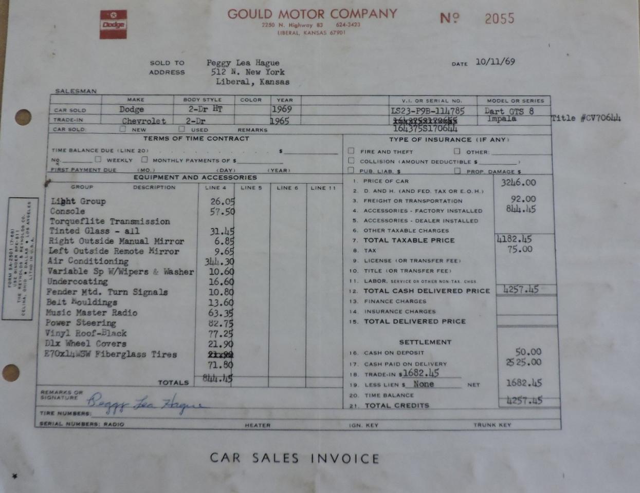 ATTN: AMERICAN BUYERS THE PRICE IS IN CANADIAN FUNDS, PLEASE CALL FOR USA DOLLAR RATES. A beautiful and numbers matching 1969 Dart GTS that is 340 CI engine powered, with automatic transmission and factory air conditioning that is still ice cold. Southern USA car with all it's rust-free original sheet metal and panels.Original window sticker, bill of sale and build sheet is included with this well documented Dart. Refinished in the original Y2 Yellow colour this GTS is stunning and completely factory original as far as codes and options. The engine runs, sounds and performs excellent, and the transmission is tight and smooth. The interior is in excellent condition and free of any damages or missing parts. All the chrome and trim on the Dart is also in excellent condition. The panel alignment, fit and finish is beautiful. New TTI dual exhaust system with Dynomax mufflers that sounds awesome. This Dart was optioned with power steering and manual 4-wheel drum brakes. Many new steering, suspension and brake parts were installed. Definitely a must-see Dart GTS 340. A 3-year powertrain warranty is included with purchase. Comes with current insurance appraisal. Trade up or down on other muscle cars/trucks or late model 4X4 trucks. Delivery or shipping can be arranged right to your door within Canada and the USA.