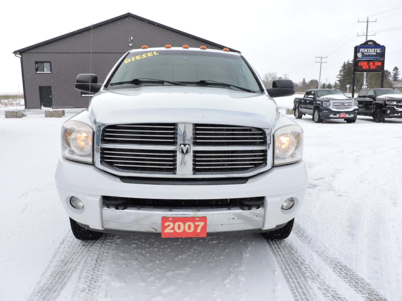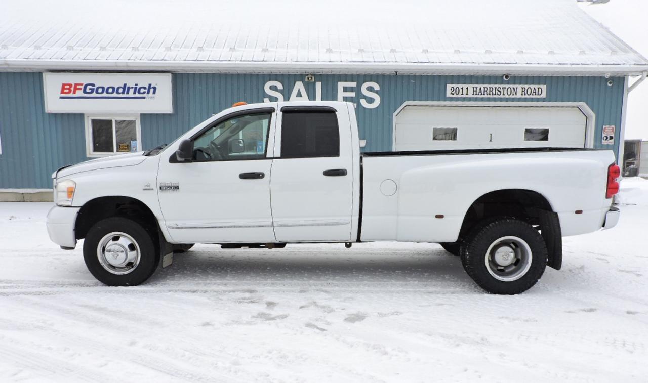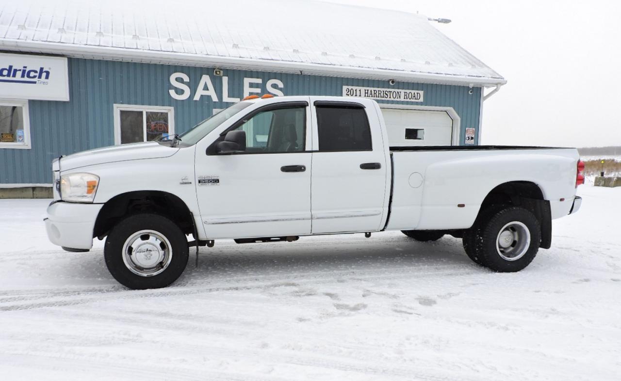 A beautiful condition and rust-free 2007 Ram 3500 Laramie dually that originated from Alberta. 6.7L Cummins powered with 6-speed standard transmission and 4-wheel drive. Heated leather seats with room for 6 people and power adjust on both front buckets. Sunroof and power rear sliding window. Infinity Audio system, 6-disc CD player, steering wheel mounted audio controls and power adjust pedals. Dual climate controls, fog lights and full power group including keyless entry. New tires, new front and rear brake pads, rotors and calipers, new ball joints and 2 new batteries were just installed for the safety. Spray in box liner and 5th wheel rails were added to the 8-foot length dually box. A must-see 3500 Ram Laramie dually with tons of new parts and rust free.