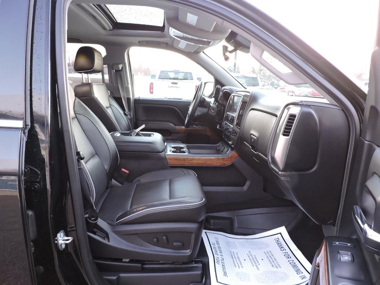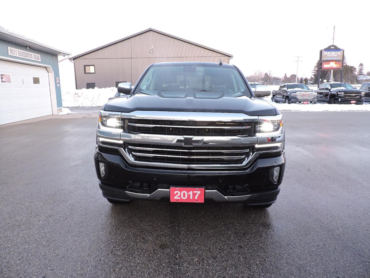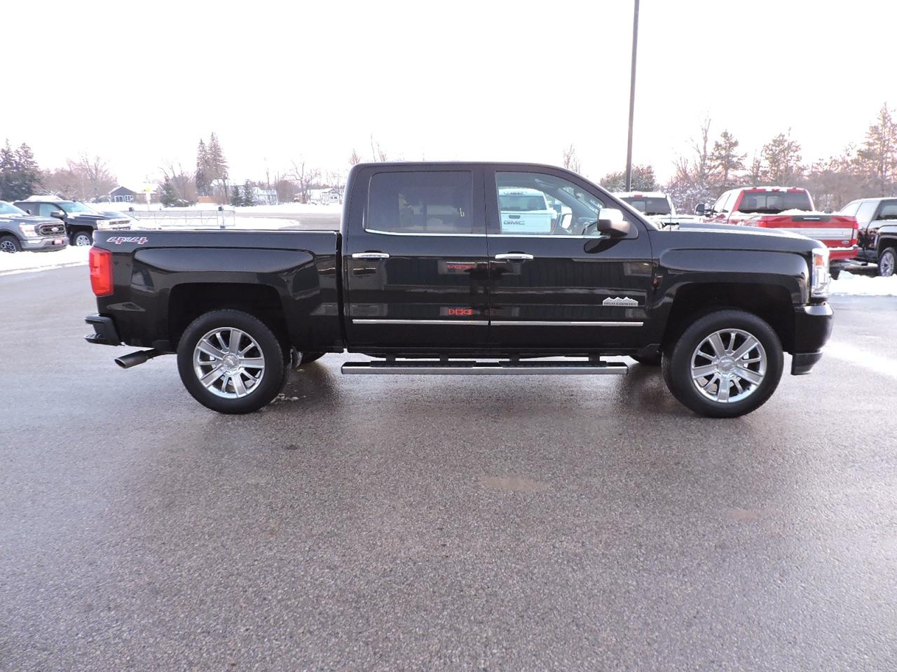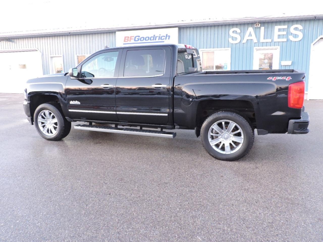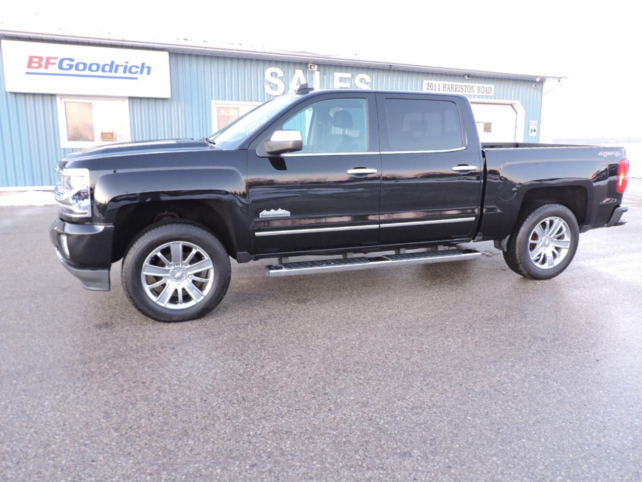 A fully optioned 2017 Silverado 1500 High Country that is powered by a 5.3L V8 engine and 4-wheel drive with optional Auto4 mode. Only 71000 KMS on the odometer and equipped with heated and cooled leather seats and a heated steering wheel. Sunroof and power rear sliding window. Navigation, back-up camera and both front and rear park assist systems. Dual climate controls, power adjust pedals, collision avoidance and lane departure systems. Bluetooth, steering wheel mounted audio controls, Bose speaker system, a CD player and remote start. New Hankook tires were just installed for the safety. Spray in box liner was applied to the 5-foot 9-inch length box. A must-see 1500 High Country.