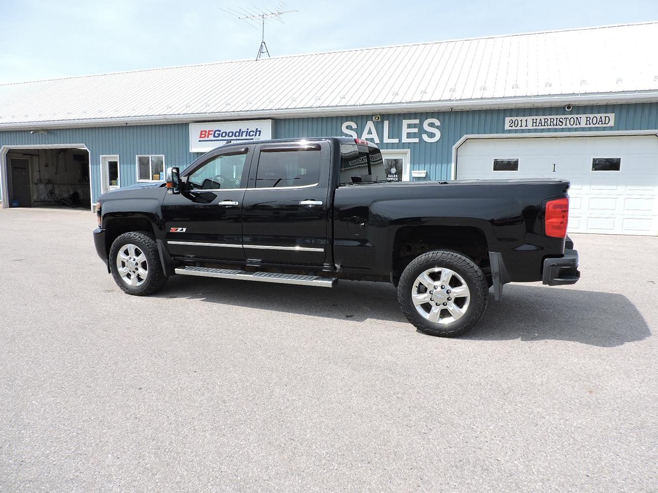 A fully loaded and locally owned 2018 Silverado 2500 LTZ that is powered by a 6.6L Duramax turbo diesel, 6-speed Allison transmission, 4-wheel drive and 3:73 gears in the rear ends. Heated and cooled leather seats and heated steering wheel. Sunroof and power rear sliding window. Navigation, back-up camera and both front and rear park assist systems. Bluetooth, steering wheel mounted audio controls, Bose speaker system and a CD player. Collision avoidance and lane departure warning systems. Built-in electric brake controller, dual climate controls and power adjust pedals. Spray in box liner, hard folding tonneau cover and 5th wheel hitch rails were added to the 6 1/2-foot length box. A must-see LTZ 2500.