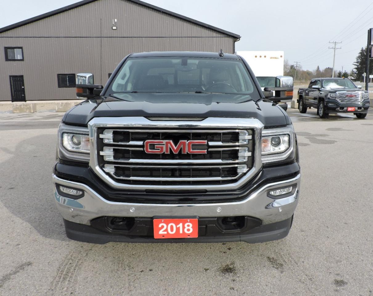A loaded with options 2018 Sierra 1500 SLT that is powered by a 6.2L V8 and 4-wheel drive. Heated leather seats with power adjust on both sides and a heated steering wheel. Sunroof and power rear sliding window. Bluetooth, back-up camera and both front and rear park assist systems. Power adjust pedals, remote start, Bose speaker system, CD player and steering wheel mounted audio controls. Well maintained truck with 24 service records on the Carfax report. Oiled truck as shown in the pictures with no rust. A must-see GMC 1500 SLT.
