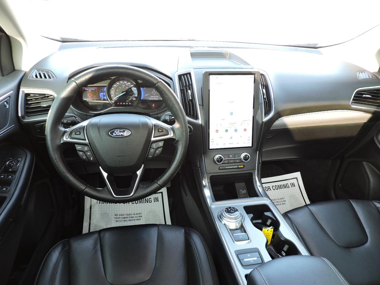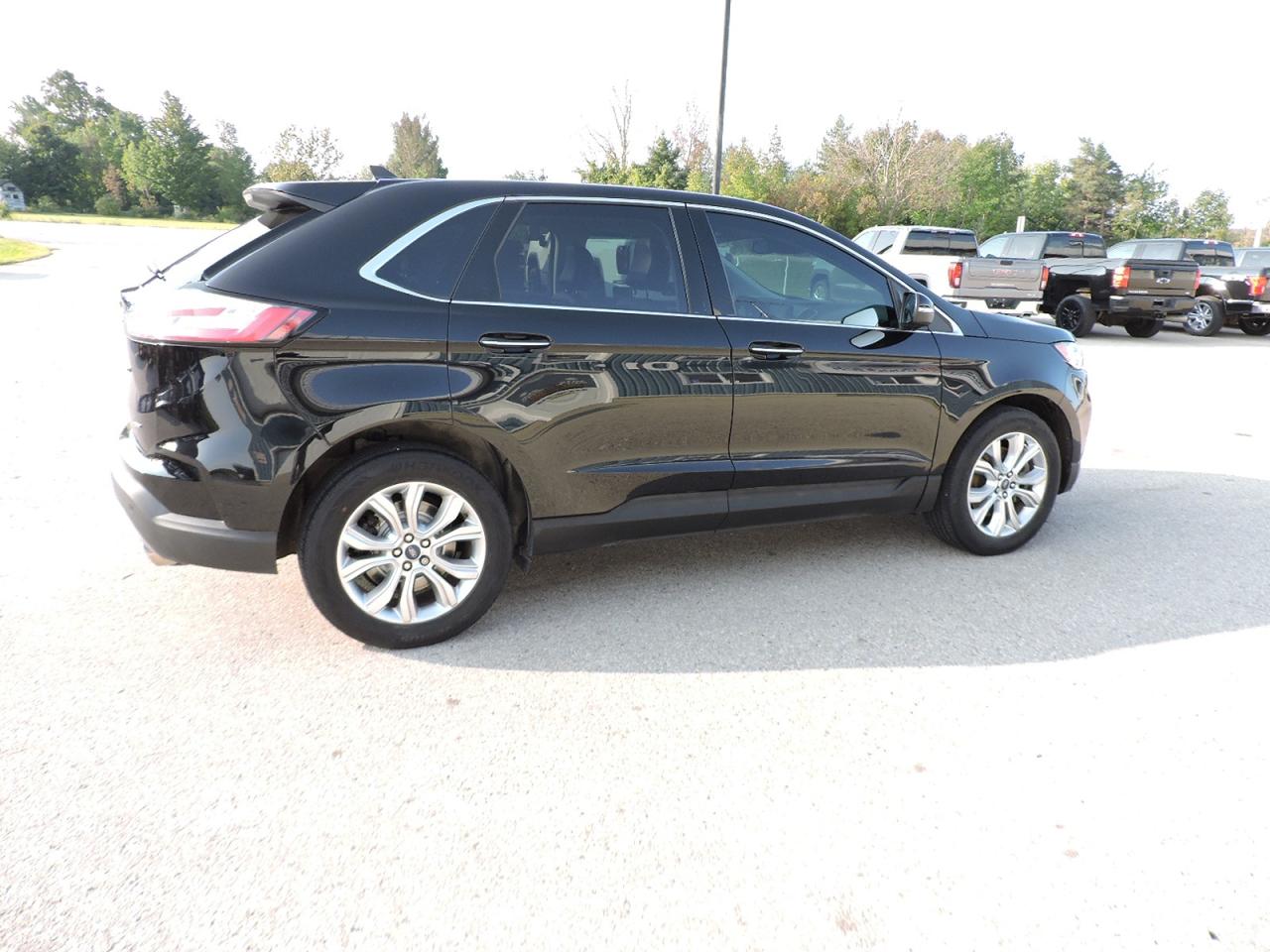 A loaded 2022 Ford Edge Titanium-AWD that is powered by a 2.0L EcoBoost engine. Panoramic sunroof, heated leather seats and heated steering wheel. Navigation, back-up camera and both front and rear park assist systems. Collision avoidance system with automatic emergency braking and evasive steering assist. Lane departure assist, remote start and power remote hatch opening and closing. Bluetooth, Android Audio, Apple CarPlay with a 12-inch LCD touchscreen. New rear brakes were just installed to complete the safety. A must-see, locally owned and full optioned Edge Titanium.