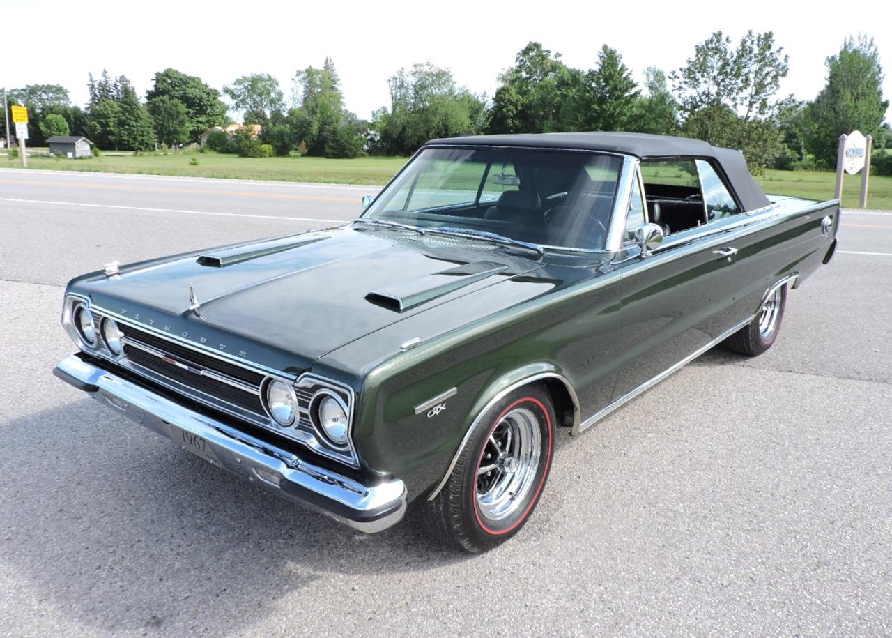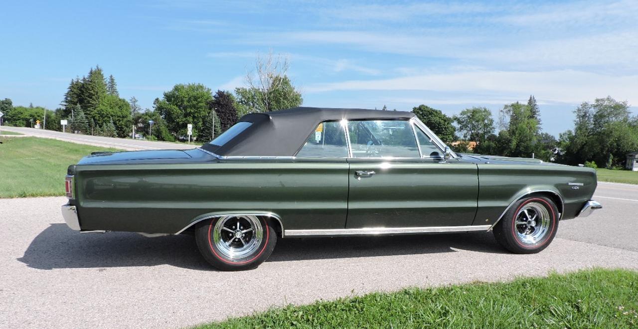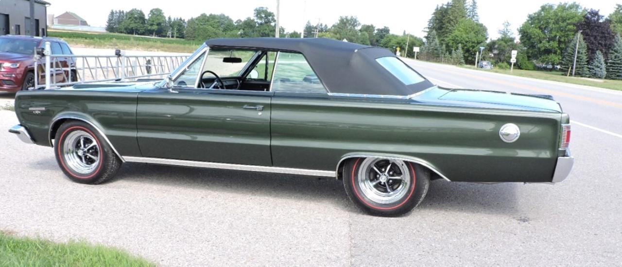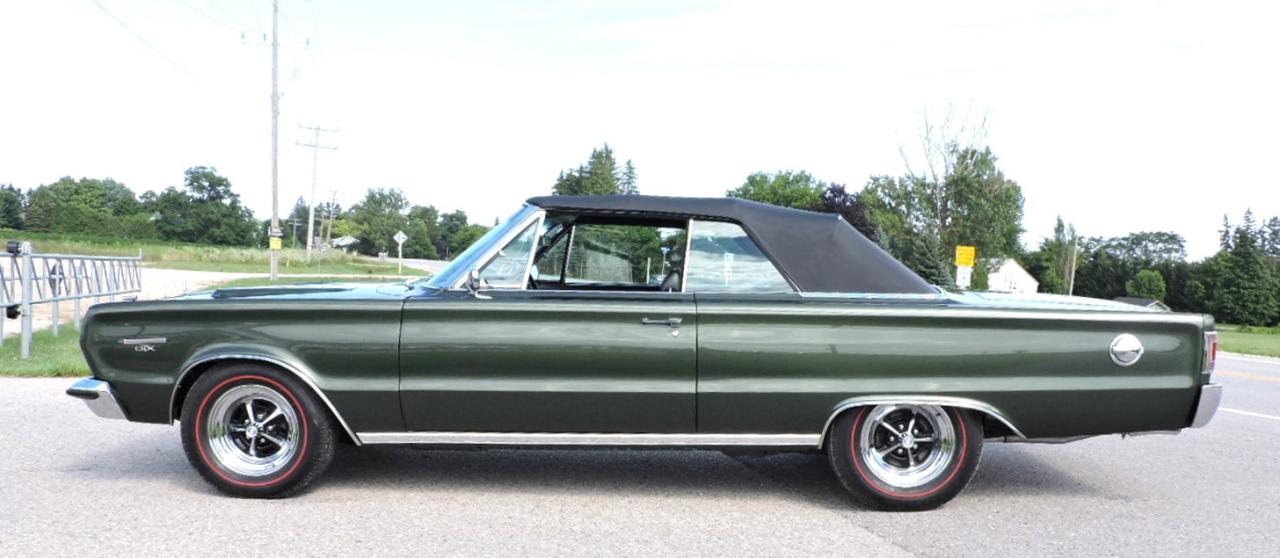 ATTN: AMERICAN BUYERS THE PRICE IS IN CANADIAN FUNDS, PLEASE CALL FOR USA DOLLAR RATES. This is a flawless condition and completely rotisserie restored 1967 GTX convertible. 1 of only 680 GTX convertibles built in 1967. Powered by the original 440 CI engine and 727 automatic transmission, both the engine and transmission were completely rebuilt during the restoration. The 8 3/4 rear end was also rebuilt and is 3:23 gears with Sure Grip. The body is super straight, and the original G colour code Dark Green Poly paint is not only stunning but was flawless applied then buffed and polished to perfection. All the chrome and trim is in excellent condition and free of any flaws. A 1 family-owned car since 1995 that is stunning and was kept in excellent condition. All new steering, suspension, brake and exhaust parts were installed during the restoration. New fuel tank, pump and lines were also installed. The interior was completely redone with seat covers, carpet and panels. A new convertible top was also installed, and the power mechanism works perfectly. The rims and tires were upgraded to 15-inch and BFGoodrich Silvertown Redline radial tires. Power steering and power disc brakes were factory optioned on this beautiful car. A must-see 1967 Plymouth GTX that was completely restored and is in excellent condition. Car is sold certified and includes a 3-year/70000 km powertrain warranty. We supply a current insurance appraisal. Trade up or down on other muscle cars/trucks or late model 4X4 trucks. Delivery or shipping can be arranged right to your door within Canada and the USA.
