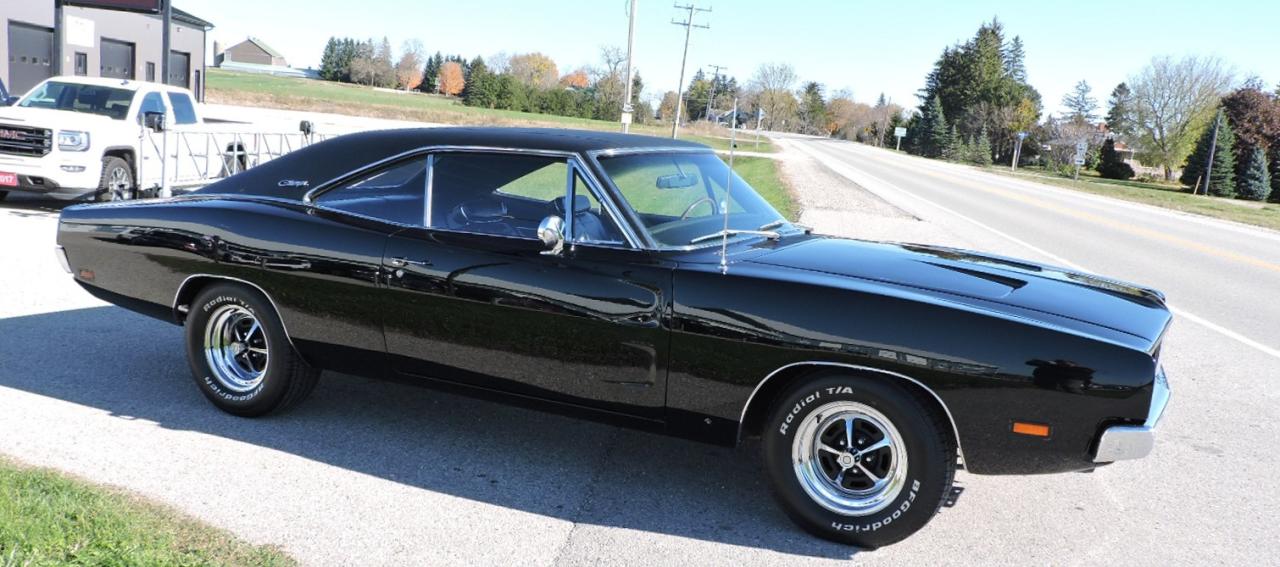ATTN: AMERICAN BUYERS THE PRICE IS IN CANADIAN FUNDS, PLEASE CALL FOR USA DOLLAR RATES. This 1969 Charger recently underwent a high quality restoration. The paint quality, panel alignment, fit and finish are excellent. The car is painted in Dodge PGZ "Black Forest Green Pearl" colour, looks black in pictures but we assure you it is green. This Charger originated from Texas and still retains the original sheet metal and panels. The 440 engine was rebuilt using top-quality parts, the assembly was then balanced and made an awesome 427 Horsepower and 536 Torque on the dyno. MSD ignition system, Edelbrock Torquer 440 intake and a new Edelbrock AVS2 carb with electric choke. The 727 transmission was also completely rebuilt and a shift kit installed. The 8 3/4 rear end is fresh with 3:55 gears and Sure Grip. All chrome and trim are either new or polished to sparkling perfection. All new steering, suspension and brake parts throughout the entire car during the restoration. The interior was completely restored with seat covers, carpet etc. and is free of any broken, cracked or missing parts. New 15-inch Magnum 500 rims and new BFGoodrich tires were just installed. Full Hedman dual exhaust system. Power steering and power disc brakes. We cannot stress the high-quality work that went into this awesome Charger, the paint is almost impossible to take a picture of perfectly as it shines and reflects every cloud, rays of sun or shadow that are present. This car is a must-see to appreciate the quality of work that was completed on it. This Charger did not leave the factory as an R/T it was a 318 engine originally. A 3-year powertrain warranty is included with purchase. Comes with current insurance appraisal. Trade up or down on other muscle cars/trucks or late model 4X4 trucks. Delivery or shipping can be arranged right to your door within Canada and the USA.