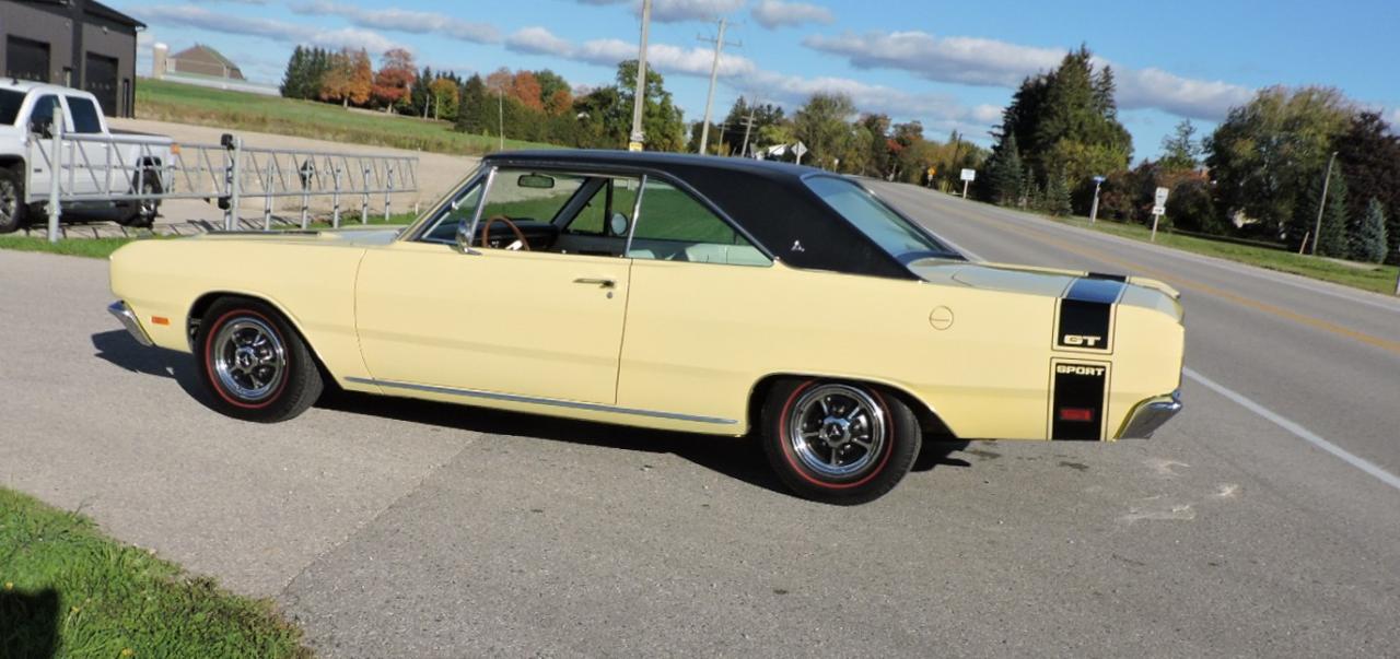 A beautiful and numbers matching 1969 Dart GTS that is 340 CI engine powered, with automatic transmission and factory air conditioning that is still ice cold. Southern USA car with all it's rust-free original sheet metal and panels. Refinished in the original Y2 Yellow colour this GTS is stunning and completely factory original as far as codes and options. The engine runs, sounds and performs excellent, and the transmission is tight and smooth. The interior is in excellent condition and free of any damages or missing parts. All the chrome and trim on the Dart is also in excellent condition. The panel alignment, fit and finish is beautiful. New TTI dual exhaust system with Dynomax mufflers that sounds awesome. This Dart was optioned with power steering and manual 4-wheel drum brakes. Many new steering, suspension and brake parts were installed. Definitely a must-see Dart GTS 340. A 3-year powertrain warranty is included with purchase. Comes with current insurance appraisal. Trade up or down on other muscle cars/trucks or late model 4X4 trucks. Delivery or shipping can be arranged right to your door within Canada and the USA.