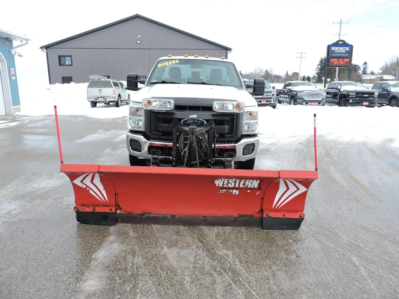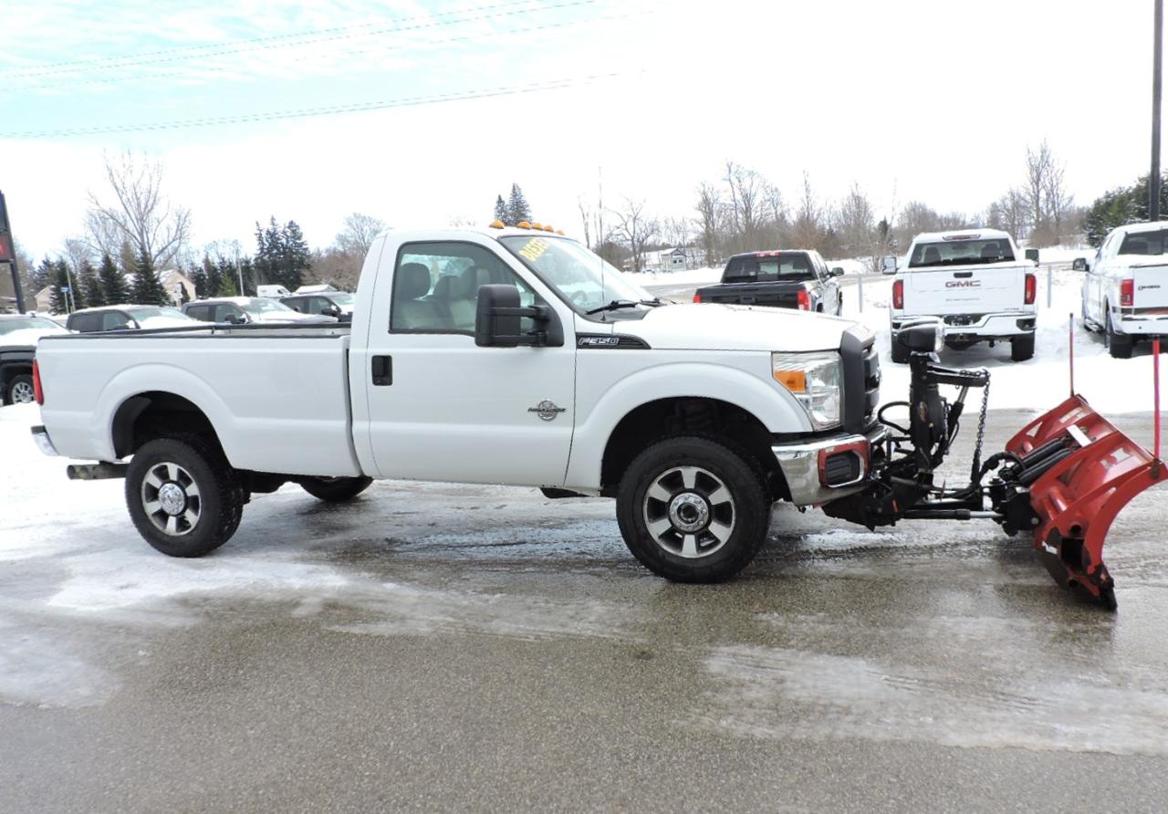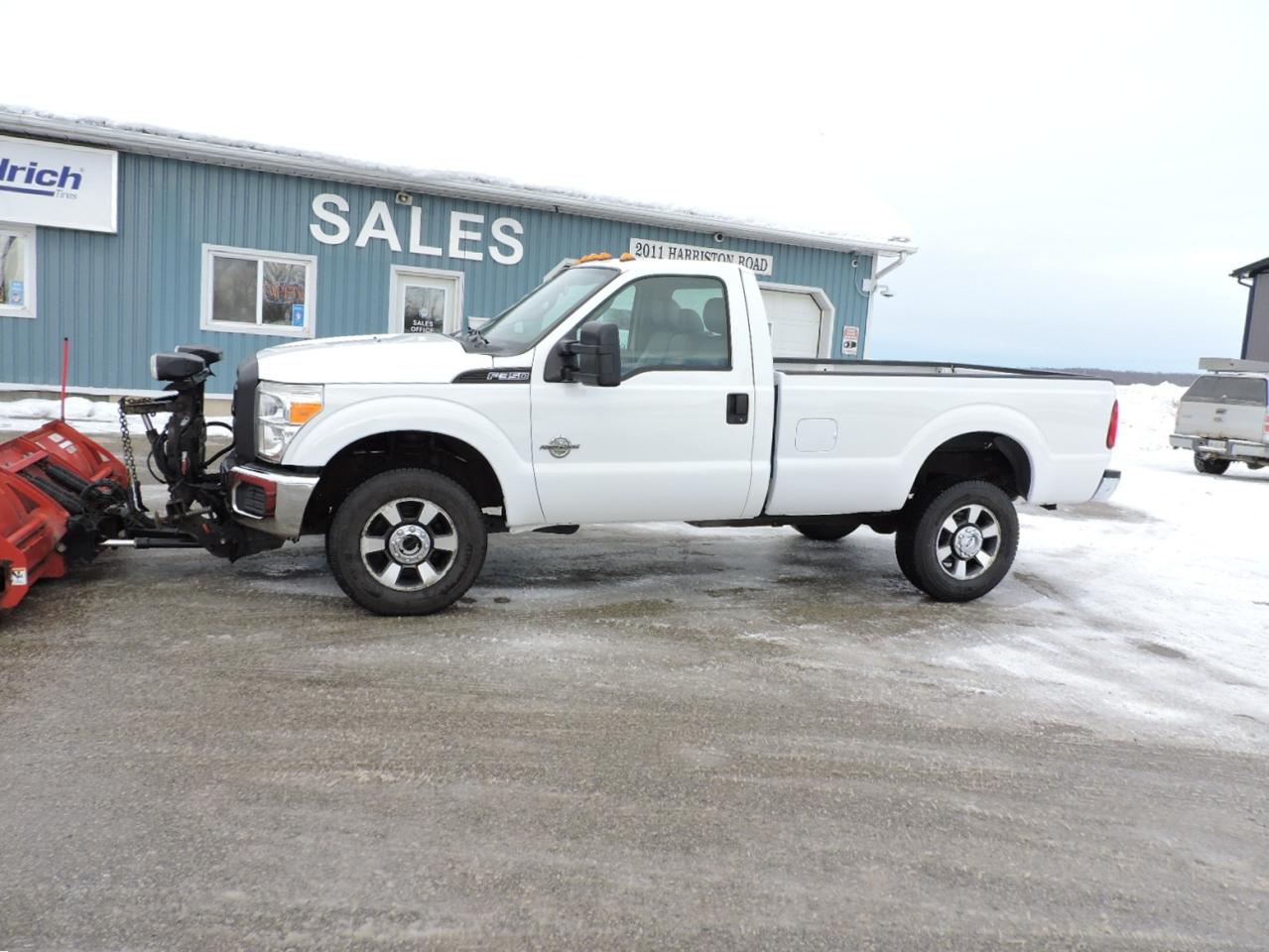 **Lease to own options are available for business owners on this beautiful condition F-350.** Well oiled and rust-free 2013 F-350 that is powered by a 6.7L Power Stroke turbo diesel engine and 4-wheel drive. Only 134000 kms on the odometer. An amazing 73 service records on the Carfax report showing how well this truck was maintained. Complete with a Western Wide Out 8-10-foot snowplow assy. See the pictures and utube video of the snowplow in operation. The truck was Krowned annually, and is rust free, A BRAND-NEW TAKE OFF BOX WAS JUST INSTALLED, see the pictures of the frame areas showing the rust protection that was previously applied. Complete new brakes front and rear including pads, rotors, calipers, park shoes, hardware and brake cables. New Michelin tires were just installed. A new starter and many new steering parts were installed for the safety. This awesome F-350 is ready to move snow.