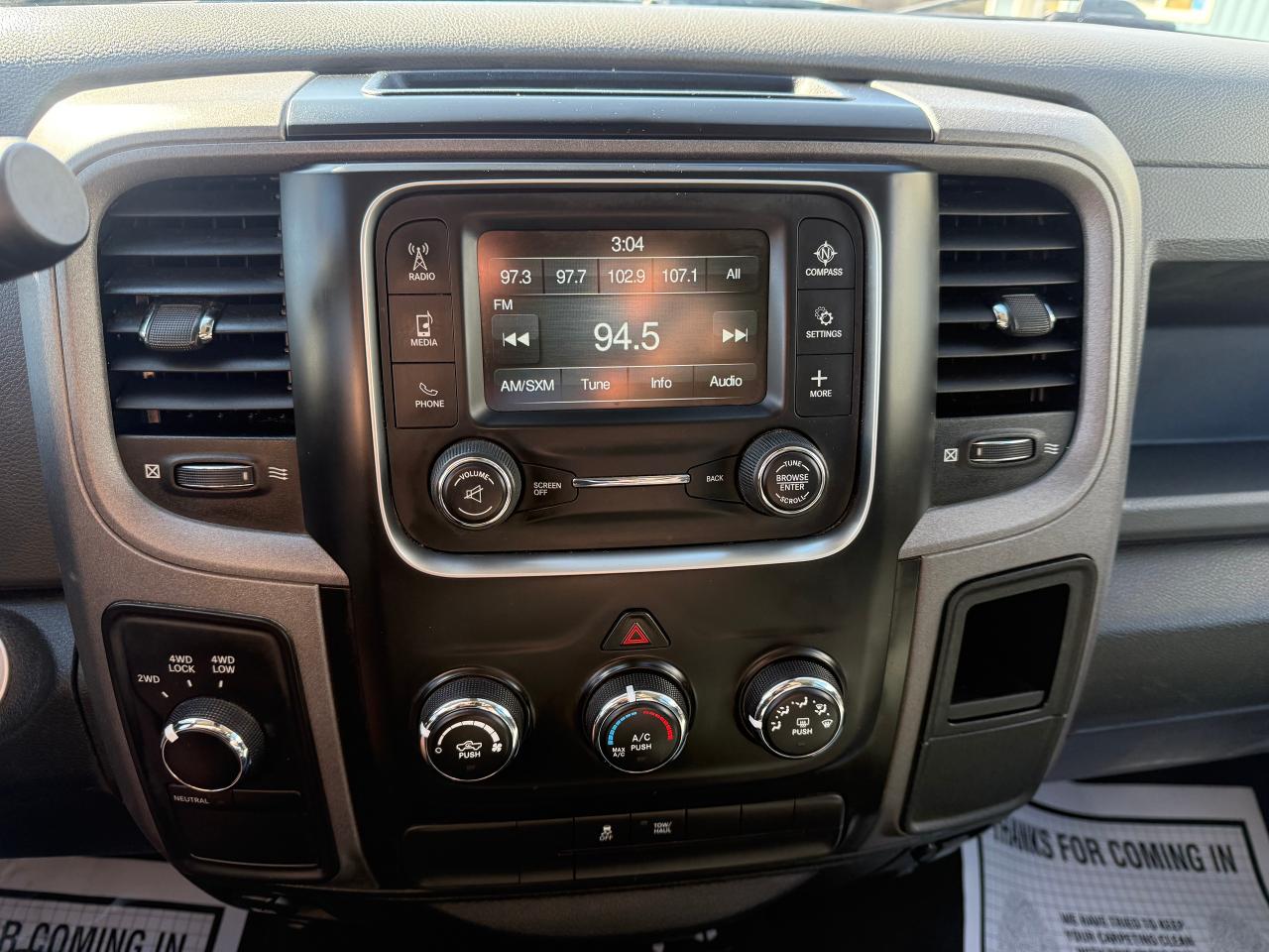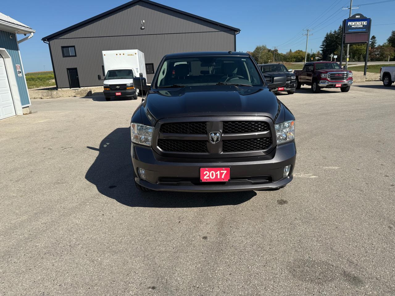 A beautiful condition and 1 owner 2017 Ram 1500 Express that is powered by a 5.7L V8 and 4-wheel drive. Room for 6 people with the cloth front 40/20/40 split bench seat. Equipped with Bluetooth, steering wheel mounted audio controls, 20x9−inch chrome−clad aluminum wheels, remote keyless entry, Uconnect 5.0−inch Touch/Hands−free communication, and Class IV hitch receiver. Spray in box liner and step bars was added to the 5-foot 9-inch length box. A must-see 1 owner 2017 Ram 1500 Express.