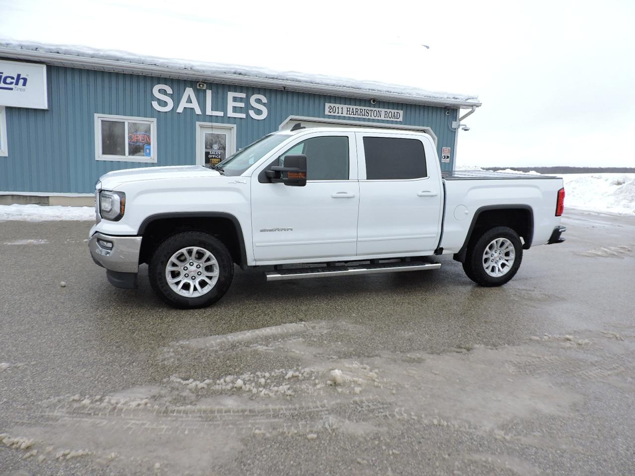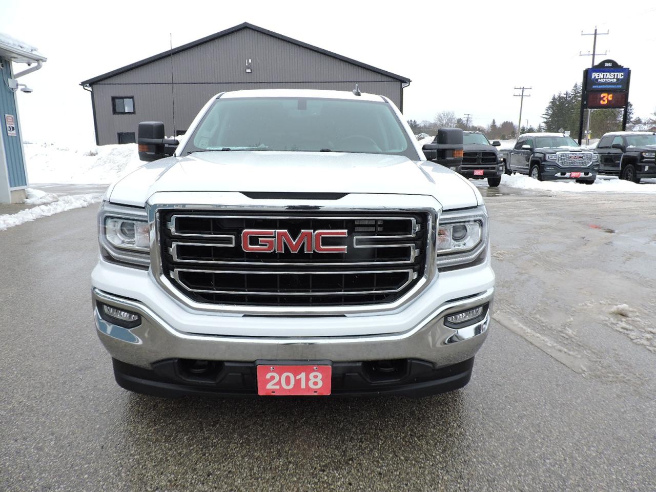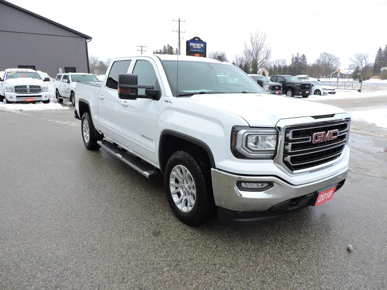 A beautifully kept and well optioned 2018 Sierra 1500 SLE with the Kodiak edition option. Powered by a 5.3L V8 and 4-wheel drive with Auto4 option. Seating for 6 people with power adjust driver's bucket and both front seats are heated. Bluetooth, steering wheel mounted audio controls and a CD player. Power adjust pedals, remote start, back-up camera and rear park assist systems. Built-in electric brake controller, dual climate controls and a power rear sliding window. Spray in box liner and a hard folding tonneau cover were added to the 5-foot 9-inch length box. A must-see GMC 1500 Kodiak edition.