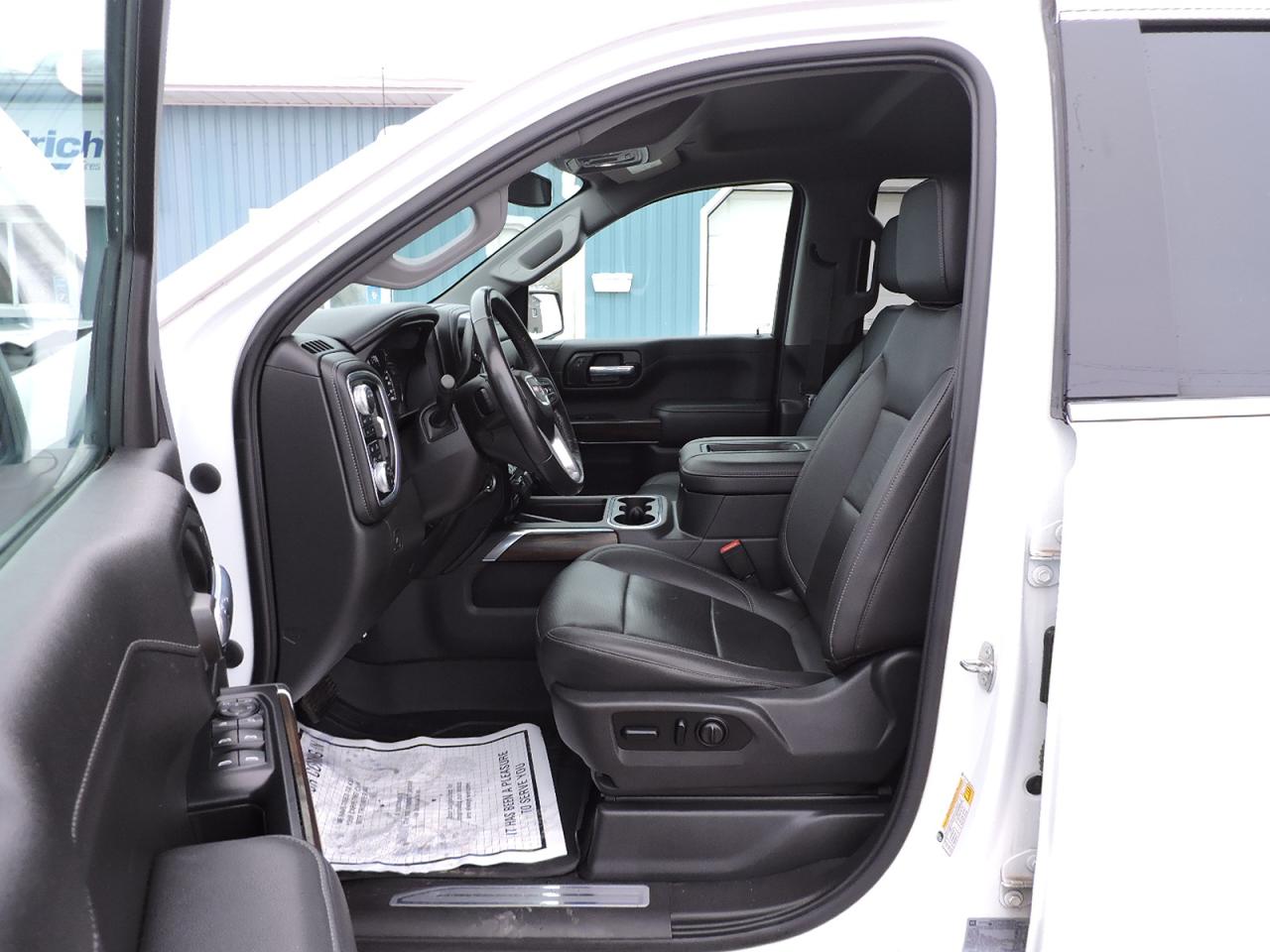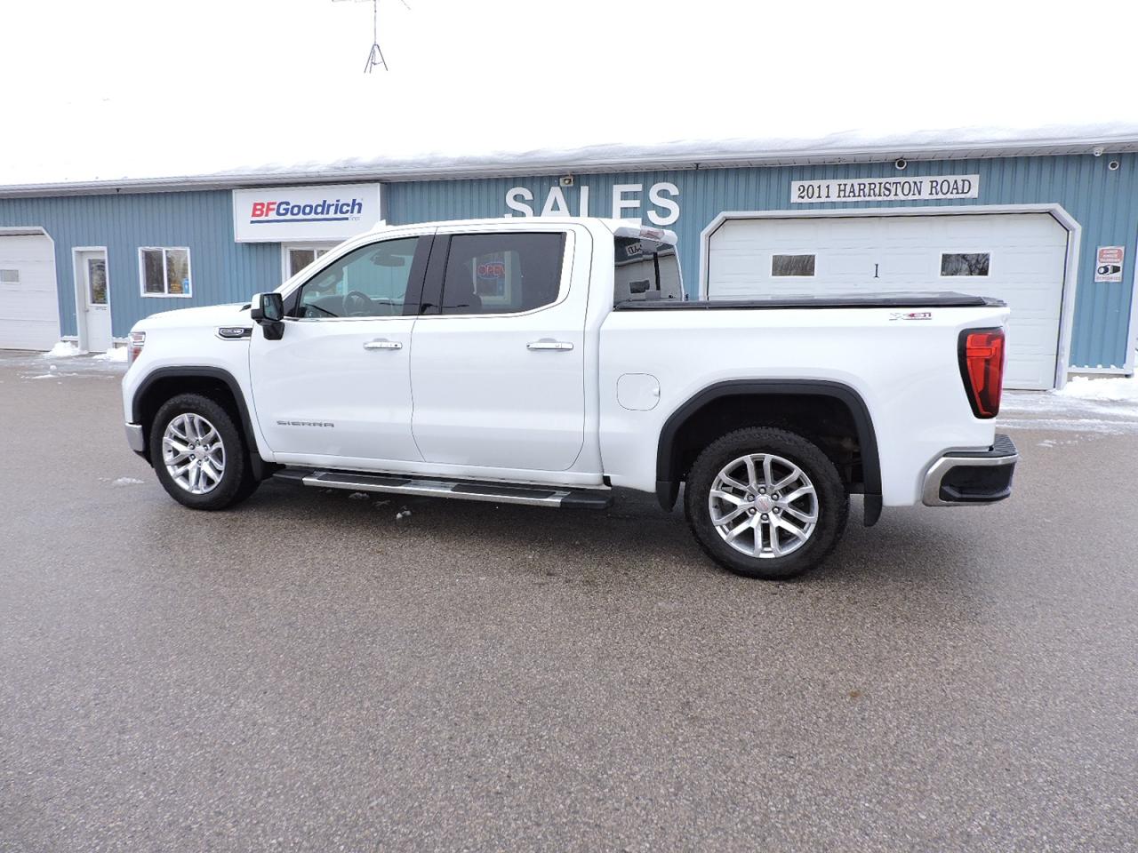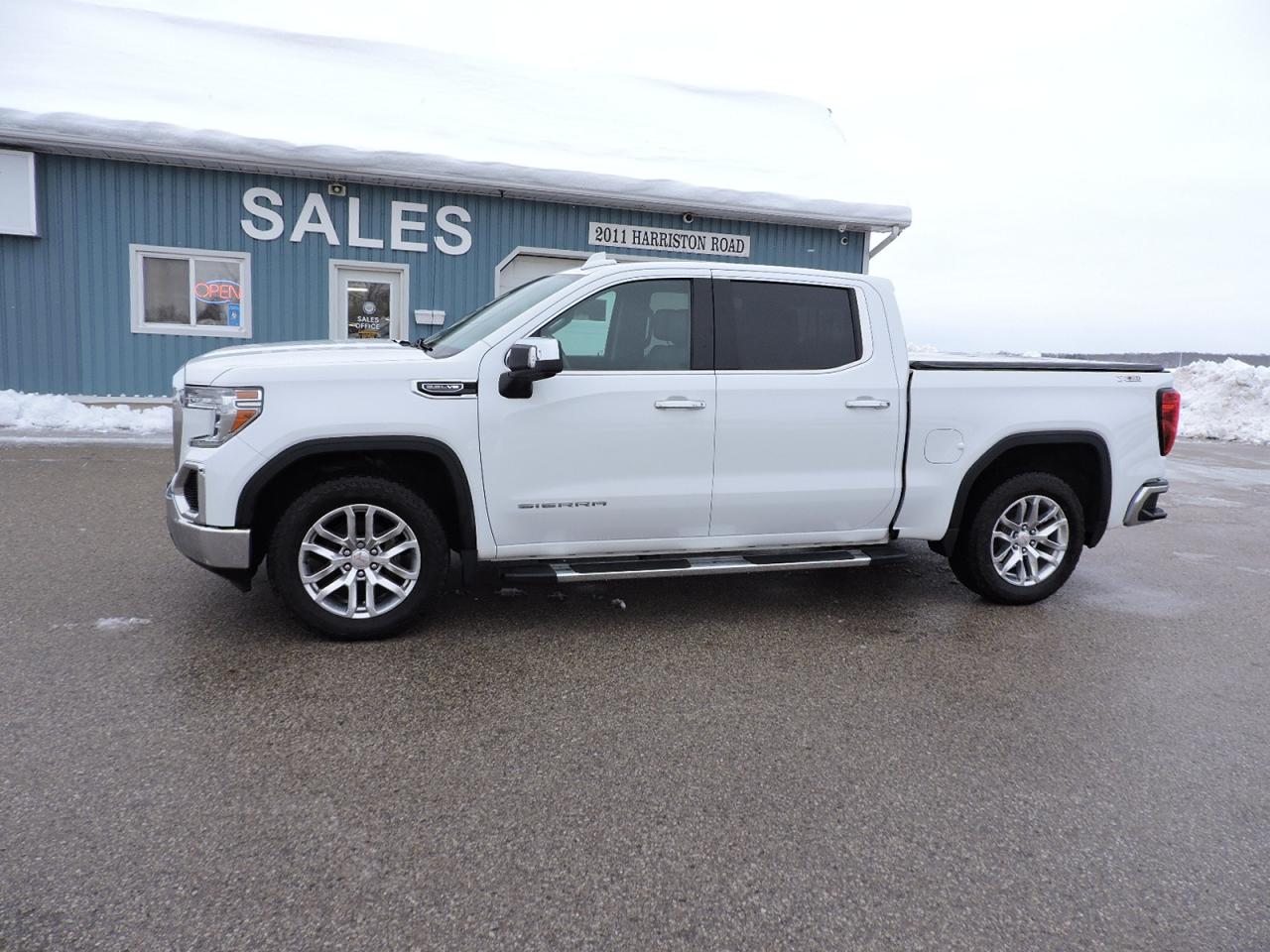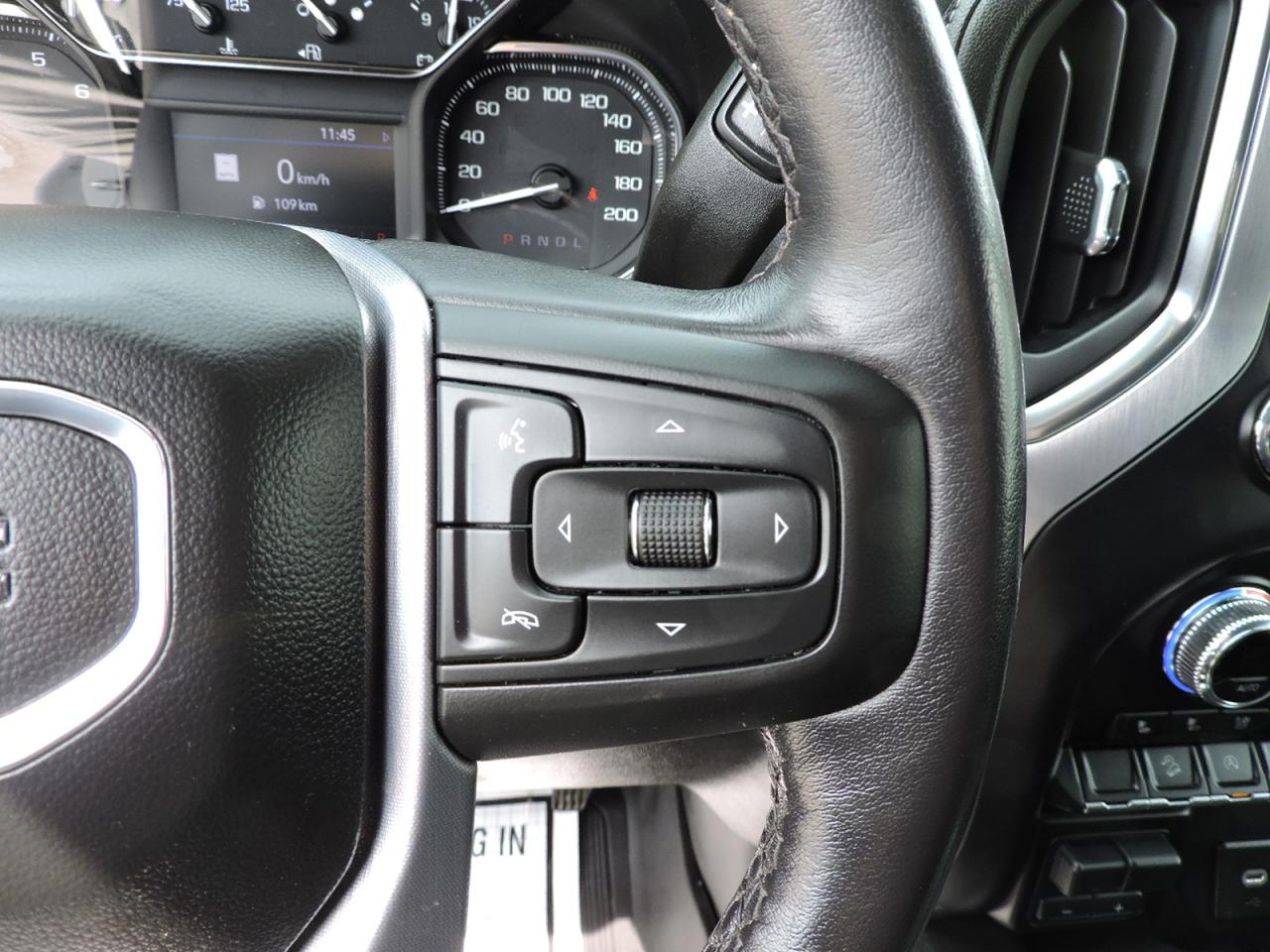 An awesome condition 2021 Sierra 1500 SLT that is powered by a 5.3L V8 and 4-wheel drive with Auto4 option. Heated and cooled leather seats and heated steering wheel. Navigation, back-up camera, remote start and remote tailgate release. Bose speaker system, steering wheel mounted audio controls, Android Audio, Apple CarPlay and Wi-fi hot spot options. Dual climate controls, built-in electric brake controller and wireless phone charging system. Front and rear brake pads and rotors were installed about 10000 km ago and are still 90% pad life remaining. X31 Off Road package and built-in tailgate step options. Sprayed in box liner and a tonneau cover were added to the 5-foot 9.9-inch length box. A must-see SLT 1500 with tons of options.