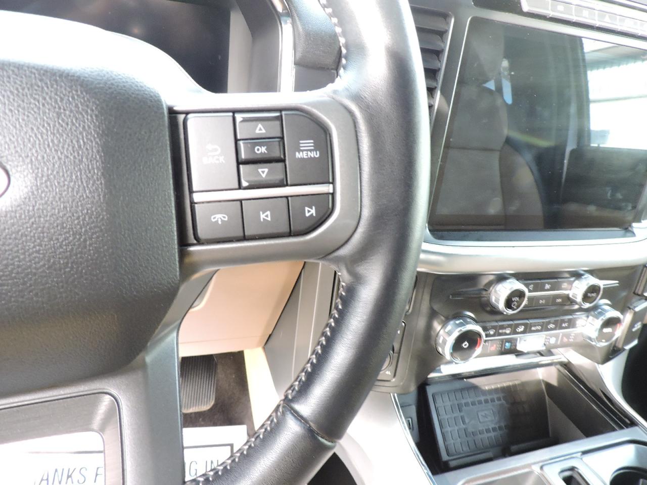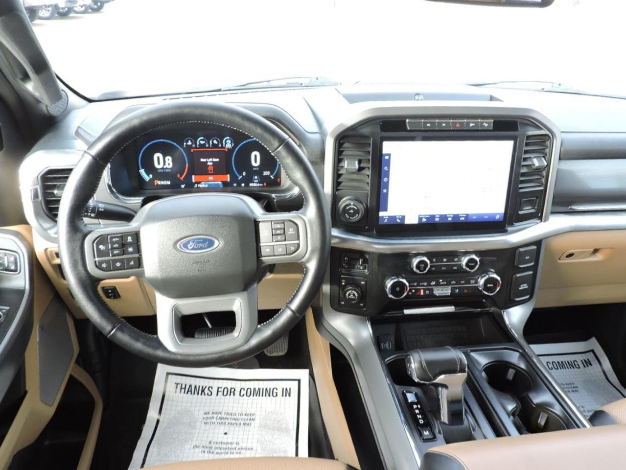 A beautifully kept, well optioned and 1-owner 2022 F-150 Lariat that is powered by a 5.0L V8 engine and 4-wheel drive. Heated and cooled leather seats and heated steering wheel. Navigation, 360-degree back-up camera and both front and rear park assist systems. Lane keeping system, post-collision and pre-collision warning with automatic braking systems. FX4 Off Road package, Lariat chrome appearance package and top of the line B&O audio system with 12-inch display. Bluetooth, steering wheel mounted audio controls, remote start and remote tailgate release. Built in electric brake controller and trailer back-up assist. A box liner and tailgate step options were adde to the 6 1/2-foot length box. A must-see F-150 Lariat.