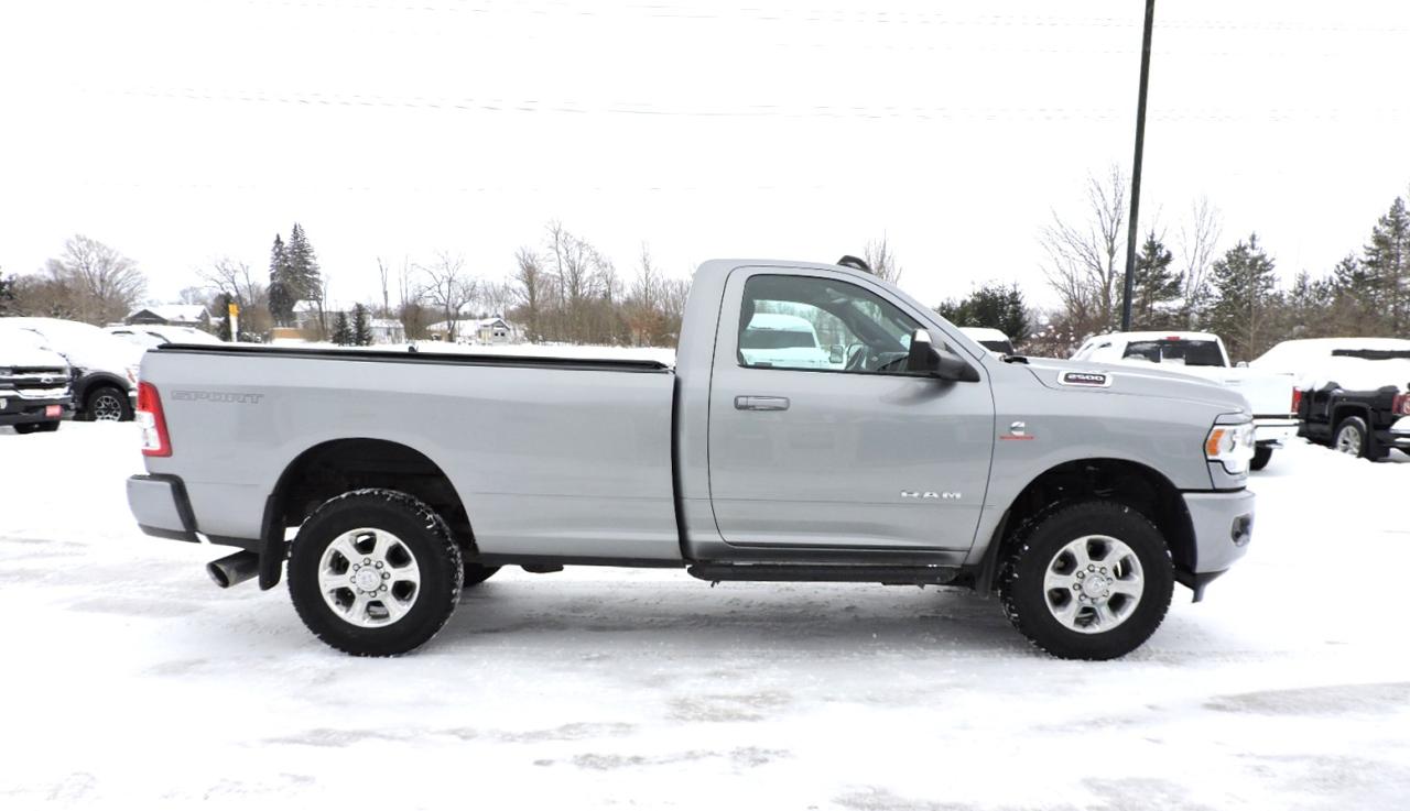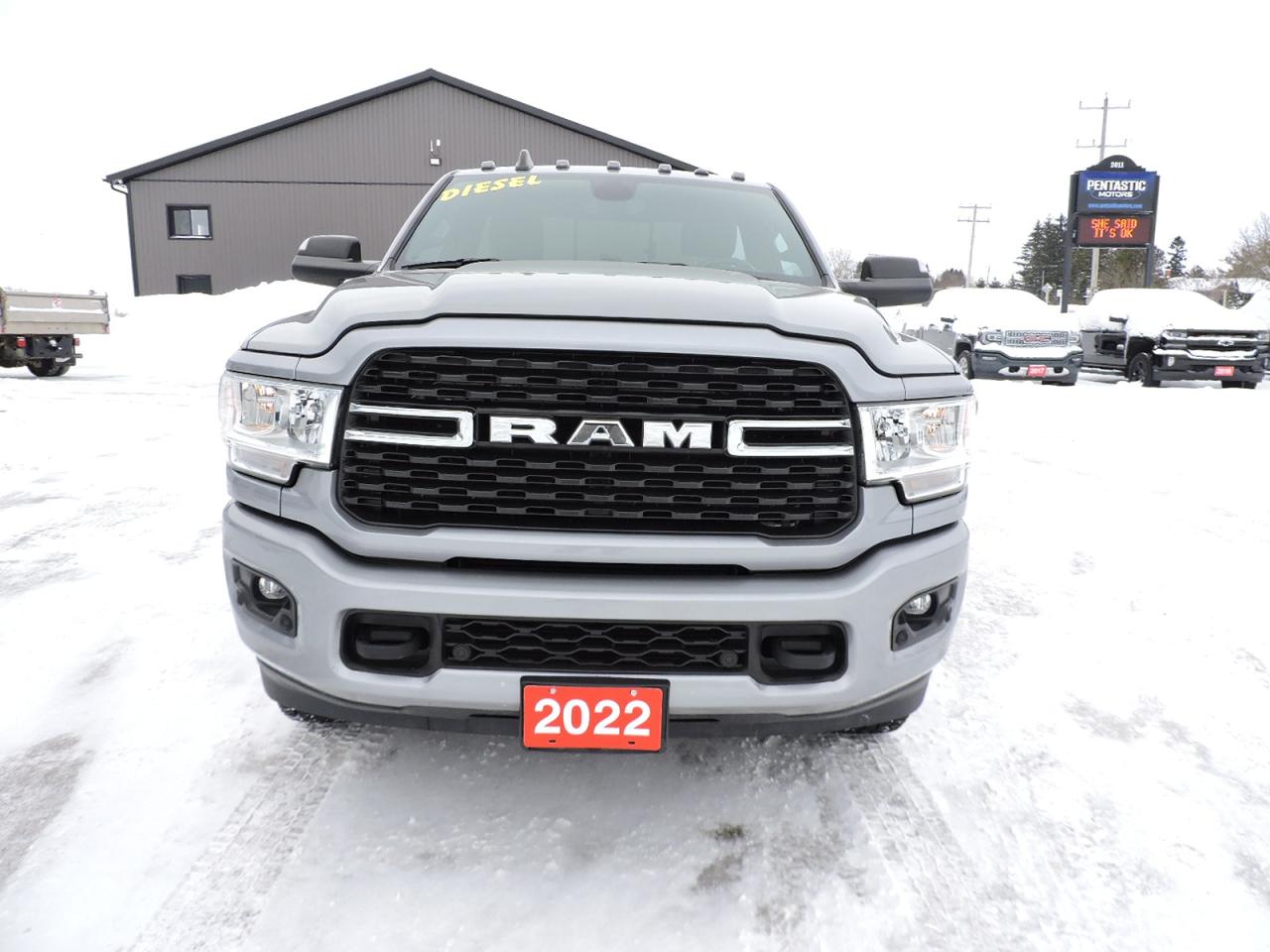 An awesome 2022 Ram 2500 that is powered by a 6.7L Cummins turbo diesel and 4-wheel drive. Heated seats and heated steering wheel with power adjust driver's bucket seat. Bluetooth, back-up camera, front and rear park assist systems and steering wheel mounted audio controls. Rear sliding window, remote start, power adjustable pedals and a built-in electric brake controller. Alpine premium sound system with 7 speakers and 506-watt power amp and full power group. Sport package, 5th wheel and gooseneck towing prep pack along with spray in box liner and a folding tonneau cover were added to the 8-foot length box. A must-see 2500 Big Horn diesel.